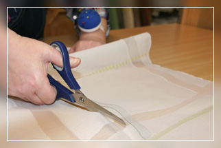 Millimetergenaue Handarbeit zeichnet unser professionelles Näh-Atelier aus. Gardinen planen, zuschneiden und nähen - alles aus einer Hand.